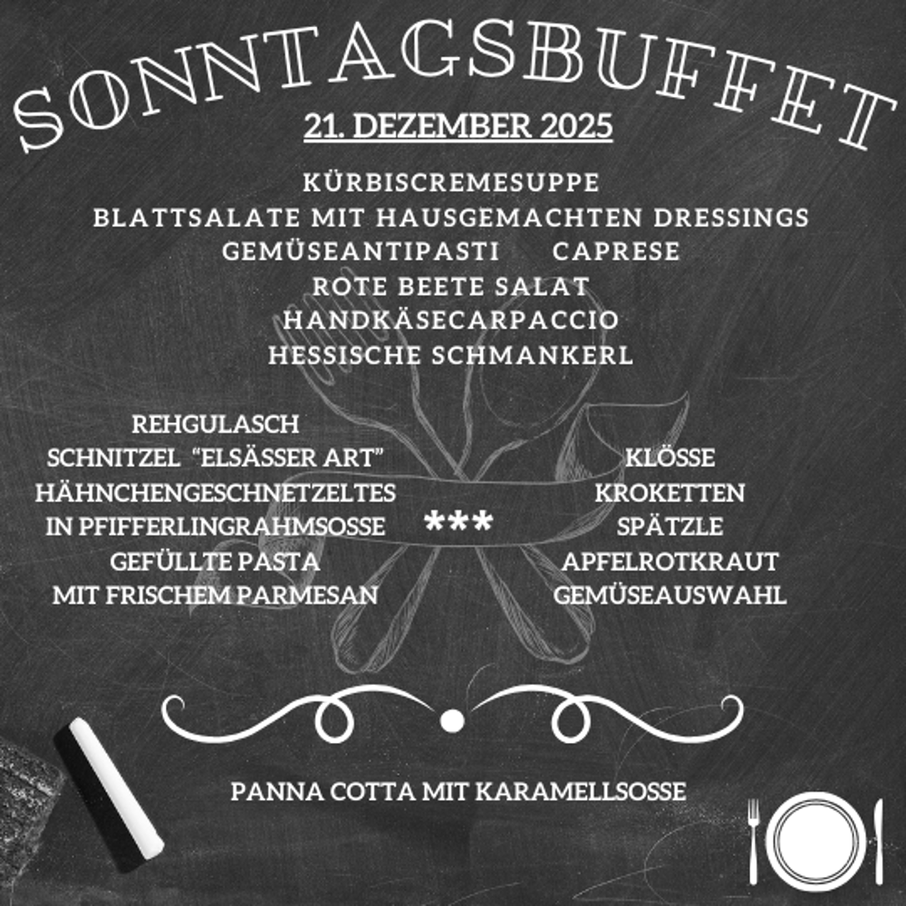 Die Termine für die nächsten Sonntagsbuffets sind der 21. Dezember und im neuen Jahr der 11. Januar, der 1. Februar und der 1. März.